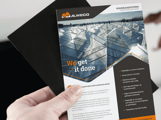 Naast onze expertises in zowel gevel- als autoreclame zijn we ook druk met drukwerk. Zo hebben we voor Alweco diverse flyers ontworpen. Bij ons kun je terecht voor alle soorten drukwerk, van visitekaartjes tot posters en natuurlijk flyers.