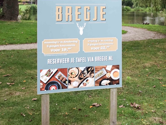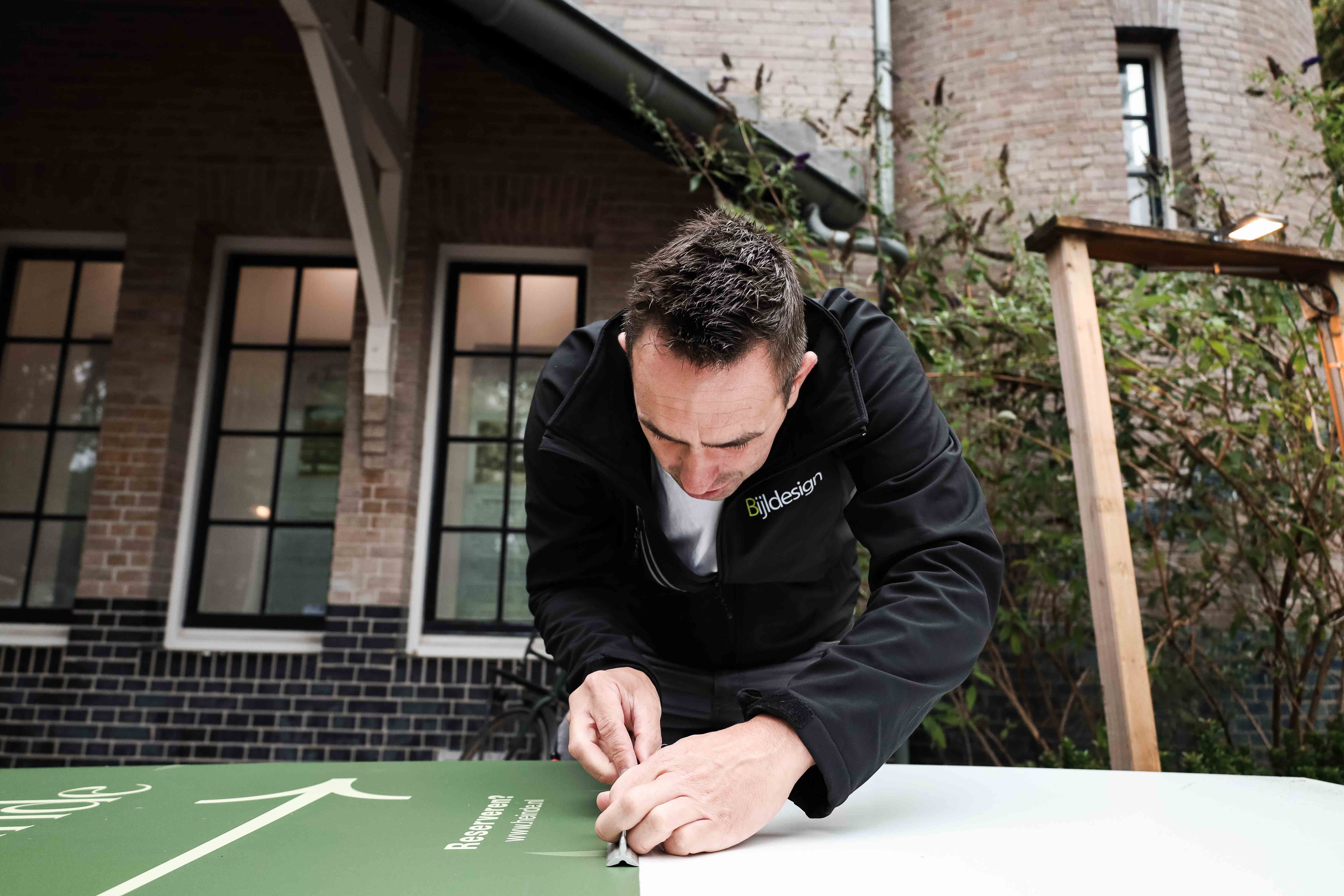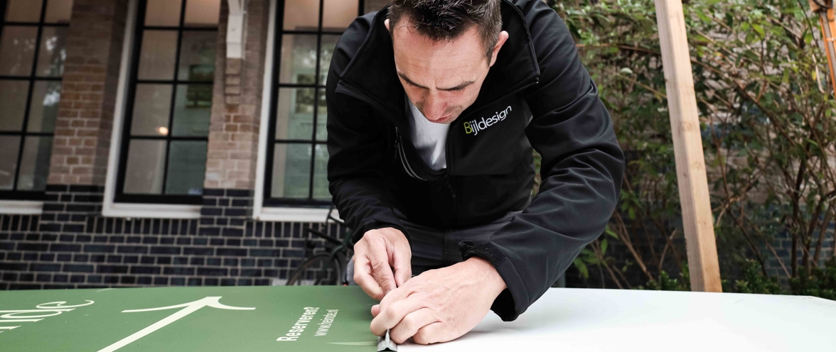 Bijldesign werkt niet alleen binnen, maar ook buiten. We rijden overal naar toe en zorgen met de beste voorbereidingen en de juiste benodigdheden dat elke uiting perfect geplaatst kan worden op locatie. Naast gevelreclame kijken we verder in de wereld van signing van jouw pand: van zuilen en parkeerborden tot bewegwijzering en nog veel meer. Wat je buiten ook nodig hebt om je bedrijf zichtbaar te maken, wij realiseren het met oog voor detail en kwaliteit!